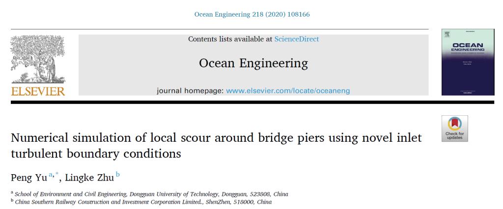 该成果以东莞理工学院为第一单位,喻鹏博士为第一作者和通讯作者发表在中科院大类一区TOP期刊《Ocean Engineering》,//doi.org/10.1016/j.oceaneng.2020.108166,中国铁建华南区域总部投资公司铁建南方工程部朱玲可参与该项研究,本研究得到了国家自然科学基金(52008106),东莞理工博士科研启动基金(GC300501-130),国家重点研发计划(2019YFC1511000)和广东省普通高校创新团队项目(2019KCXTD013)等基金的资助。相关成果还在美国土木工程协会(ASCE)旗下权威海洋土木类期刊《JOURNAL OF WATERWAY PORT COASTAL AND OCEAN ENGINEERING》(中科院3区)发表。