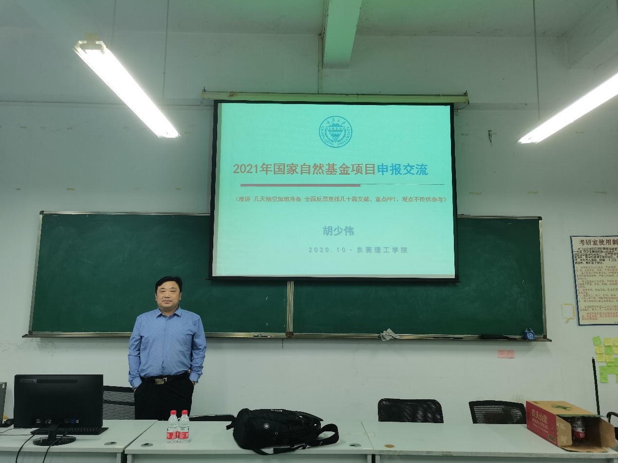 特邀国务院政府特殊津贴专家,重庆大学博士生导师、长江学者特聘教授、国家杰出青年基金项目获得者、国家“万人计划”科技领军人才、国家百千万人才工程入选者胡少伟教授,来校做了题为“国家自然科学基金申请与撰写讲座”讲座。30余名师生参加了此次活动。会议由郑愚副院长主持。