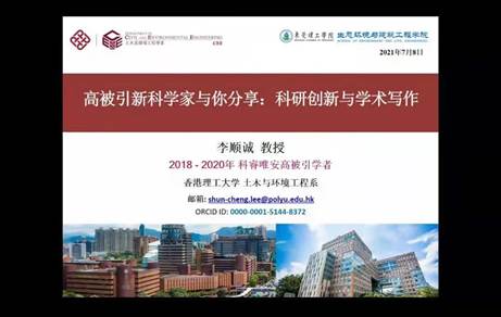 陈洪伟副教授的邀请,科睿唯安高被引学者---香港理工大学土木与环境工程系李顺诚教授为cgpay钱包