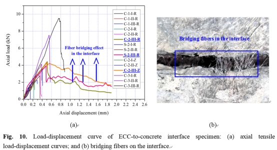 主要创新点:ECC与混凝土界面轴向抗拉力学模型(界面轴向受拉破坏准则):ECC与混凝土界面的基本力学性能是确保ECC应用于亚热带滨海侵蚀地区混凝土结构修复与加固的基本前提,而受拉破坏又是ECC与混凝土界面破坏的主要形式之一。因此开展了界面轴向抗拉性能的研究。研究结果表明:界面粗糙度是影响ECC与混凝土界面粘结性能的一个重要参数,并且界面粗糙度存在一个界限值;当界面粗糙度大于粗糙度界限值时,界面的轴向抗拉强度将大于ECC或混凝土的轴向抗拉强度,在轴向荷载作用下,其破坏形态将由界面剥离破坏转变为ECC断裂破坏或混凝土断裂破坏。因此,在亚热带滨海侵蚀地区ECC加固或修复混凝土结构时,界面粗糙度应大于界面粗糙度界限值。