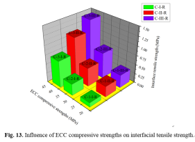 目前国内外还没有关于界面粗糙度界限值的理论计算方法或理论模型,该研究建立了界面轴向抗拉力学模型,即界面轴向受拉破坏准则,该模型可以判别或预测ECC与混凝土界面轴向抗拉破坏模式以及界面抗拉强度。此部分的研究成果对ECC加固或修复混凝土结构具有重要的指导意义。