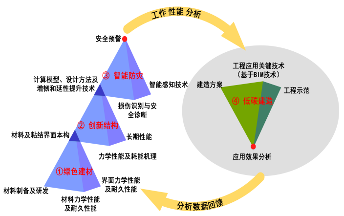 团队针对高性能低能耗建筑材料及结构应用等关键技术进行攻关,主要开展以下几个方面的研究: