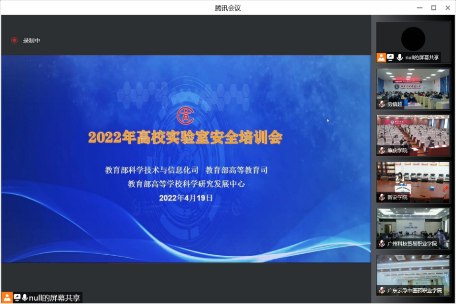 cgpay钱包 于2022年4月19日上午在线上开展2022年高校实验室安全培训会,cgpay钱包 副院长邱永福,实验中心全体教职工参会。高校实验室安全培训会专家对《高等学校实验室安全检查项目表(2022年)》修订内容以及本年度实验室安全检查重点进行详细解读,并就高校实验室安全基础理论、管理实践等内容进行报告交流。副院长邱永福根据安全检查要求各教职工对所辖实验室进行安全自查,发现并消除安全隐患。