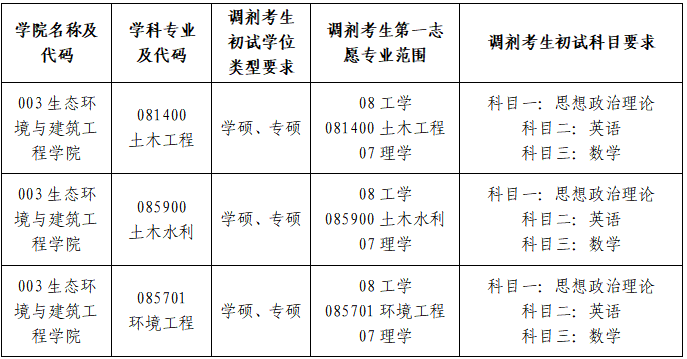 2. 土木水利专业接收统考英语、数学的考生,学硕与专硕均可,且第一志愿报考专业学科类别为理学或工学(专业代码前两位为07或08)。