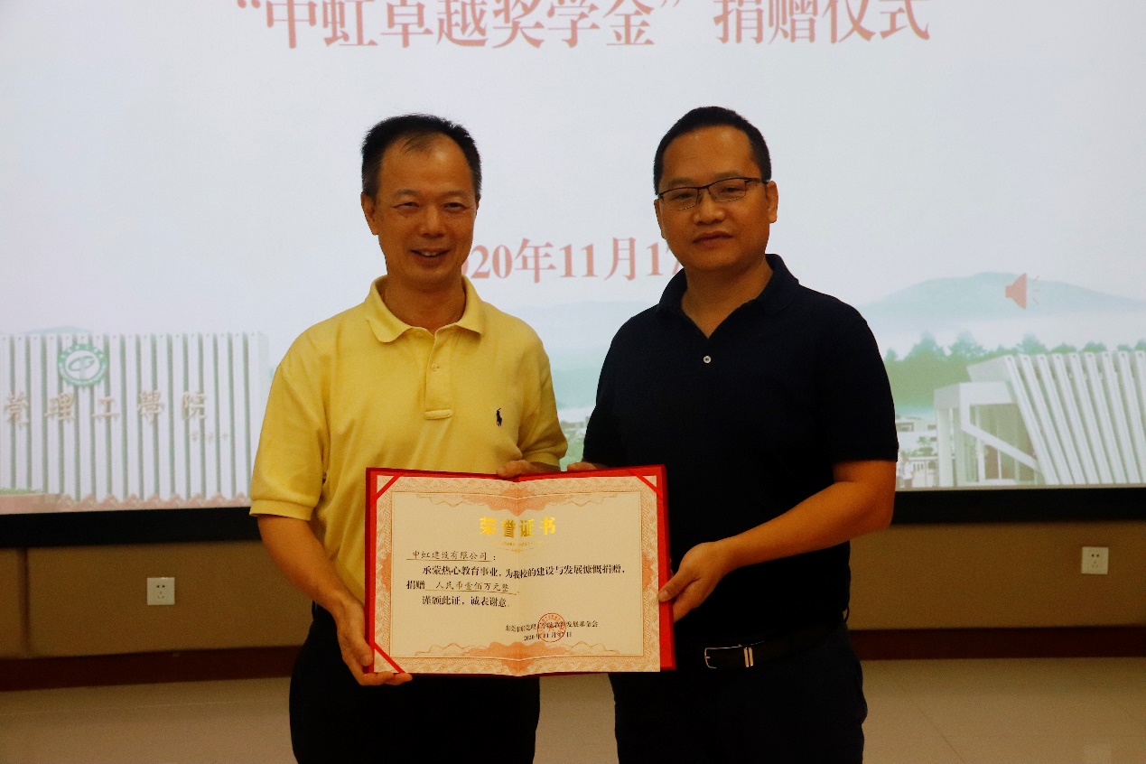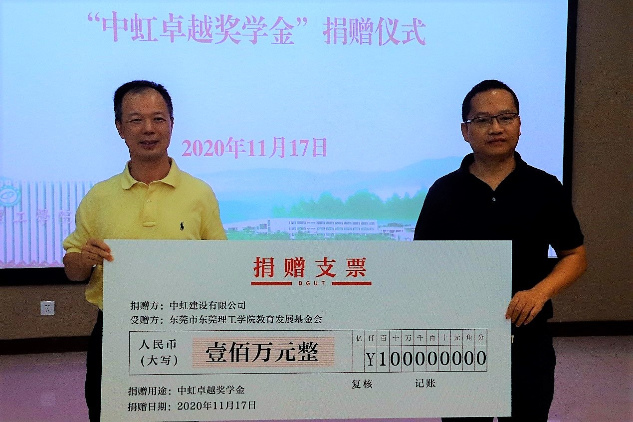与中虹建设有限公司在松山湖校区学术会议中心301举行捐赠仪式。中虹建设有限公司董事长黎磊落、总经理黎晃厚等公司代表,东莞理工学院副校长李忠虹、cgpay钱包