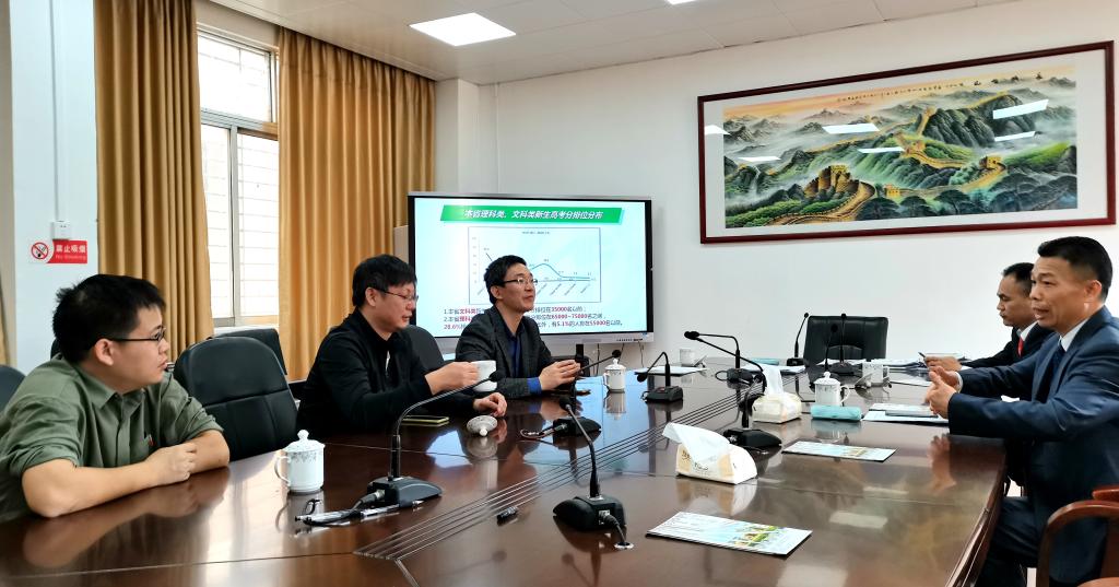 在交流座谈会上, 阳西县第一中学校长许绍绪、副校长冯应捆就学校24年来的办学情况、高考录取率、学校发展特色做了详细介绍;李衍亮主任从东莞理工学院人才培养、教学科研、招生变化方面做了详尽的讲述;会上还就高中、大学教育理念的衔接、中学生进大学研学、 中学优秀学生干部培训拓展做了充分交流。