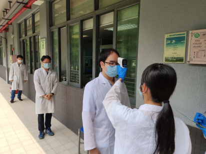副院长邱永福主持召开学生返校疫情防控演练会议,传达学校5月8、9日举行的学生返校疫情防控演练内容和工作要求,实验室使用必须把疫情防控和安全生产摆在首位,贯彻落实好各项防控措施,对进入实验室的人员进行严格审核。实验老师需穿戴好实验服、手套等防护用品,同时配备消毒酒精,测温枪等疫情防控装备。遇到突发情况(如发热、咳嗽、乏力等),应严格按照应急指引文件,立即上报学校疫情防控应急组,学院疫情防控应急组及联络员,维持现场秩序安抚学生情绪,等候防疫办、医护技术组人员前来处置。
