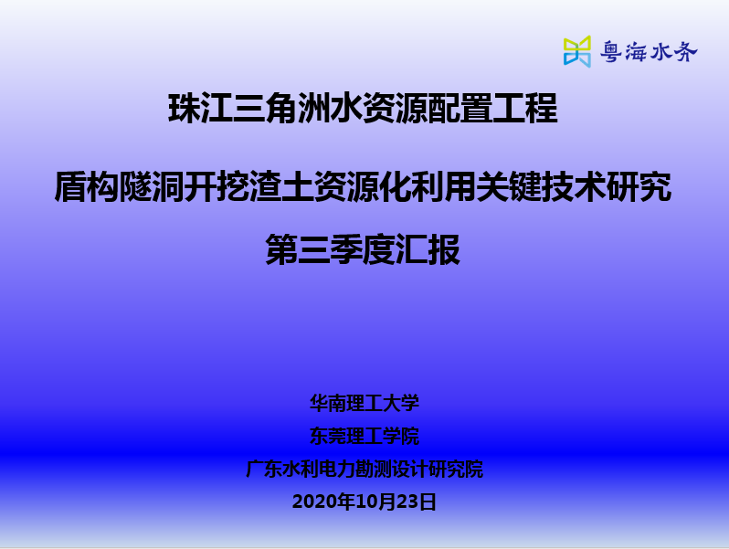 同一天,花开慧博士也作为本项目组东莞理工学院代表,同华南理工大学、广东水利电力勘测设计研究院等单位一起向粤海水务集团及中铁隧道局集团有限公司、中国水利水电第七、第八工程局有限公司等施工单位做珠江三角洲水资源处置工程第三季度科研成果汇报。