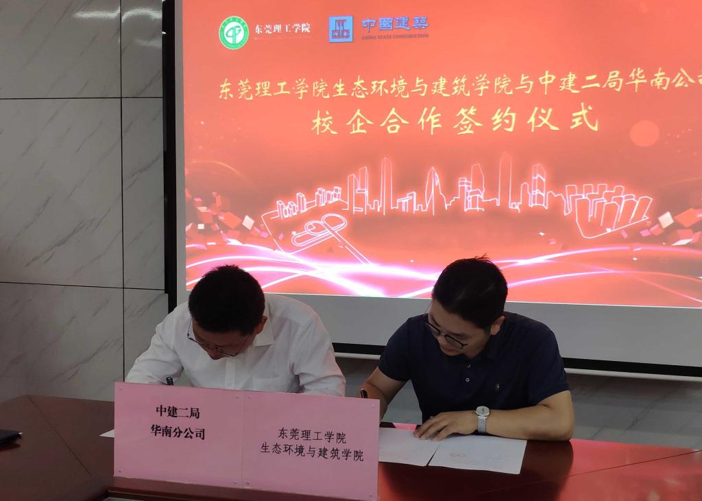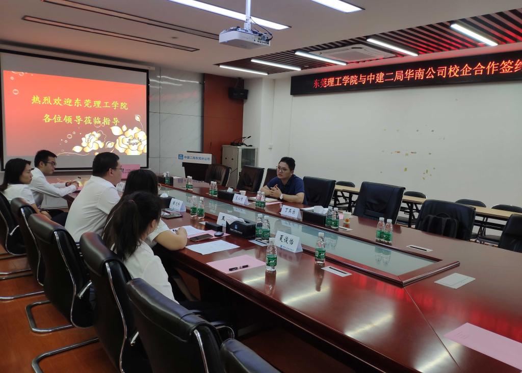 土木工程系主任艾心荧博士、系副主任丁其乐博士与中建二局东莞分公司党总支副书记褚文科、总工程师孟珊、办公室主任王龙等出席。