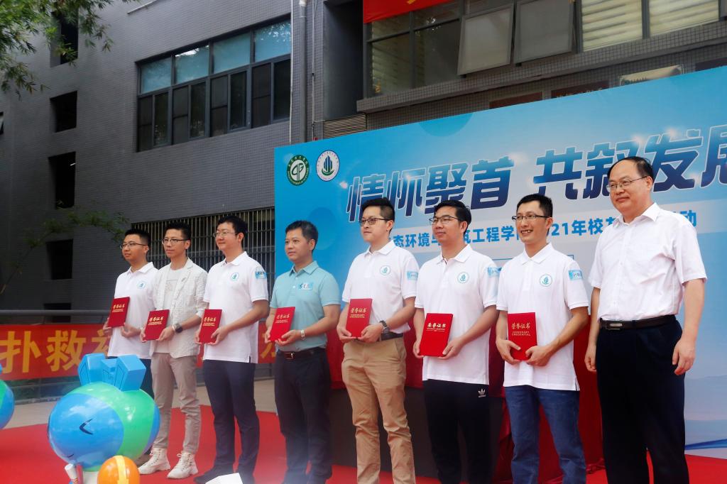 院长郑愚以及部分校友代表共同为综合实验楼模型揭幕。最后,校友代表向老师献花并合影留念,校友会第二届理事会换届仪式暨校友返校日现场活动圆满结束。