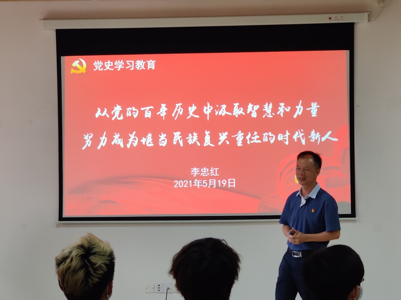 主题班会以“学、思、践、悟、扬”为主线。李忠红首先为同学们做了题为《从党的百年历史中汲取智慧和力量,努力成为堪当民族复兴重任的时代新人》的报告。他结合习近平总书记关于党的历史的重要论述以及在党史学习教育动员大会上的重要讲话精神,从9个角度深入浅出地向同学们介绍了开展党史学习教育的重大意义,并重点回顾了中国共产党的4个历史时期。随后,他从13个方面生动总结讲述了党的百年历史宝贵经验,指出中国共产党之所以百年以来能够有效实施领导,最为根本的原因就在于我们党始终坚守为中国人民谋幸福,为中华民族谋复兴这个初心和使命。最后,他结合习近平总书记在视察清华大学时的重要讲话精神,鼓励同学们要从百年党史中汲取智慧和力量,奋发作为,努力成为堪当民族复兴重任的时代新人。