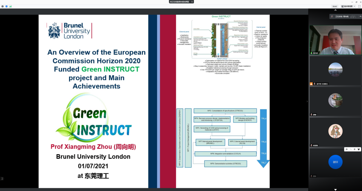 师生做了一场线上专题讲座,题目为《An Overview of the European Commission Horizon 2020 Funded Green INSTRUCT project and Main Achievements》,学院院长郑愚教授和青年博士以及研究生等参加了线上讲座。