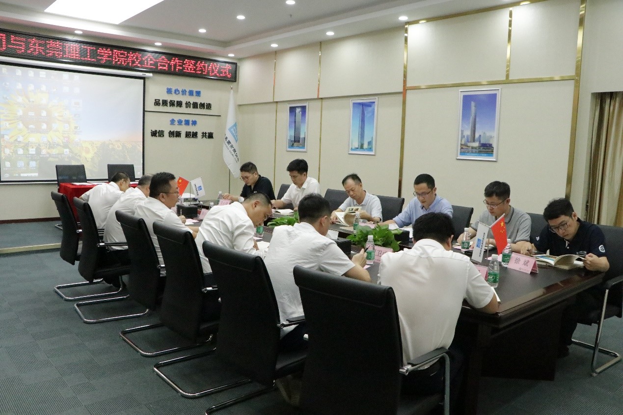 石连君对东莞理工学院领导的到来表示热烈欢迎,他表示,公司将秉承“互利共赢”的宗旨,深入推进“产学研”融合,依托合作双方优势,通过技术支撑、合作研究、成果共享、人才培养等形式,实现科技成果的转化,共同推动双方在市政、水利、房建、生态环保等领域的发展。随后,双方签署《校企联合开展产学研合作协议书》与《共建教学实习基地框架协议》,并相互授牌。