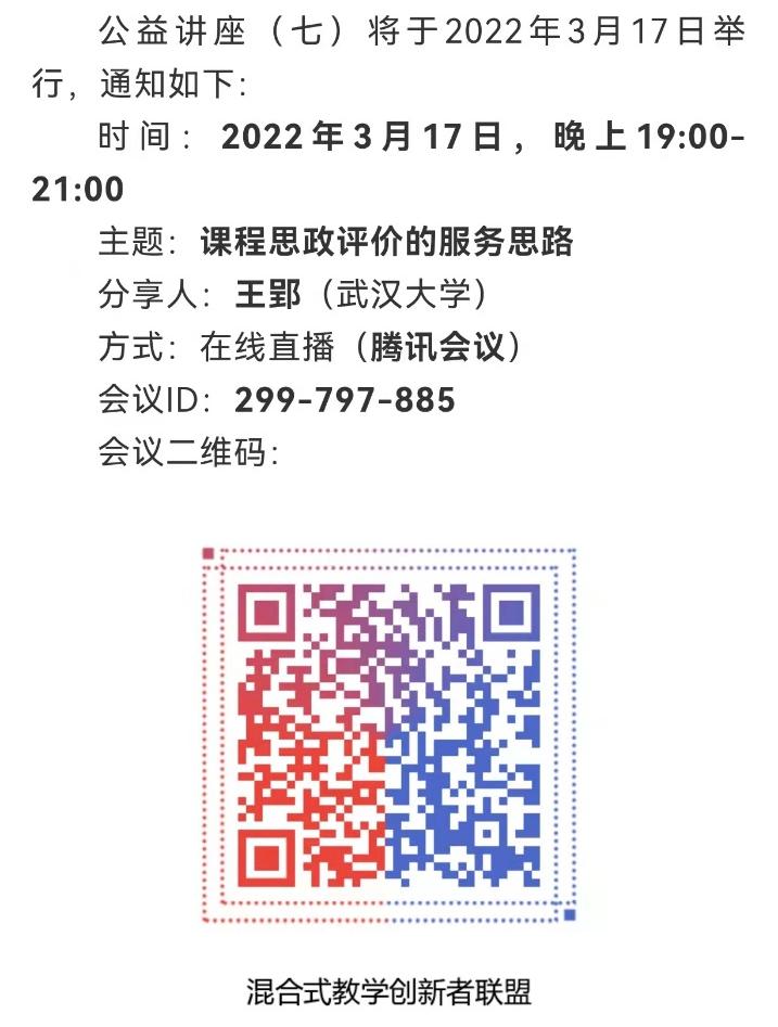 组织全体教师参加了由“全国混合式教学创新者联盟”组织的在线讲座。该讲座主题为“课程思政评价的服务思路”,由武汉大学王郢博士主讲,上海交通大学苏永康老师主持。
