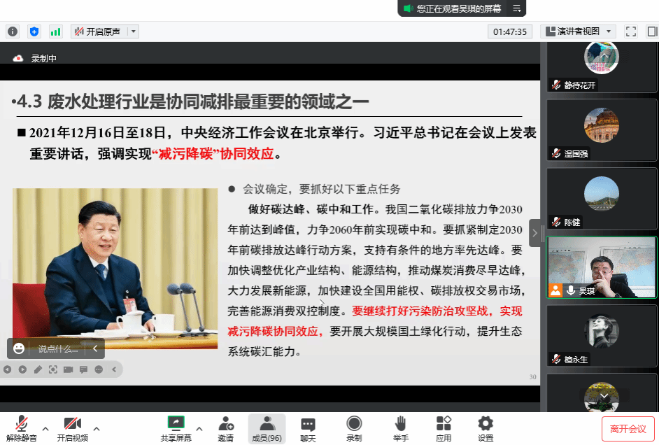 为进一步探讨“双碳”背景下水环境治理的方向,2022年10月21日,东莞市生态环境局松山湖分局联合东莞市松山湖生态环境发展促进会举办了《“碳达峰、碳中和”背景下的水环境治理》线上专题讲座,讲座邀请了现任东莞理工学院研究生导师、博士后导师的吴琪博士作为主讲专家。