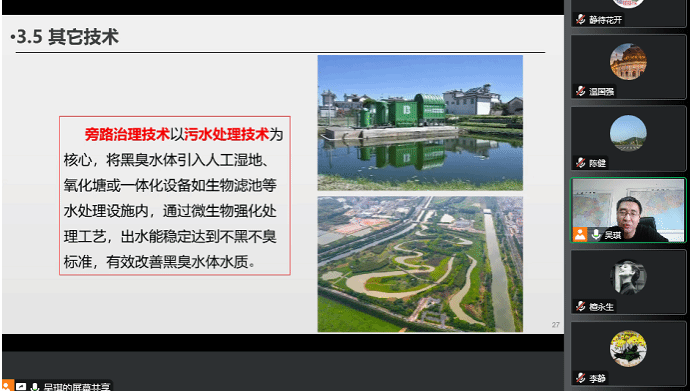 围绕温国强高工提出的要点,吴琪博士先从碳达峰、碳中和的背景介绍了国内外的宏观政策,再结合我市水环境治理现状、治理目标、现有黑臭水体治理技术,有针对性地提出水处理行业未来碳减排的方向,给予有关企业及科研人员一定的工作方向及对策思路。