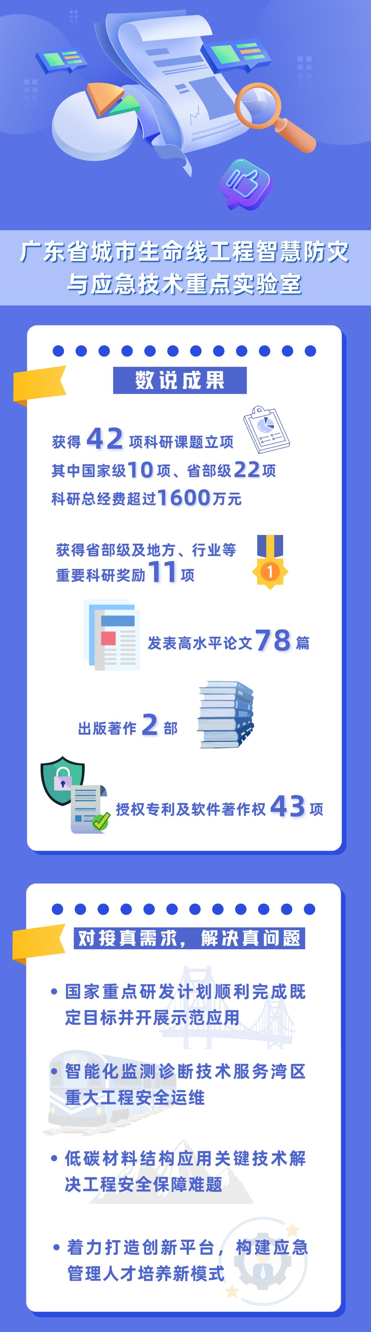 这是广东省城市生命线工程智慧防灾与应急技术重点实验室在2022年取得的重要研发成果及成功应用示范之一。该实验室是我省首个聚焦城市及工程安全应急领域的重点实验室,依托我校建设,于2022年正式揭牌启动。
