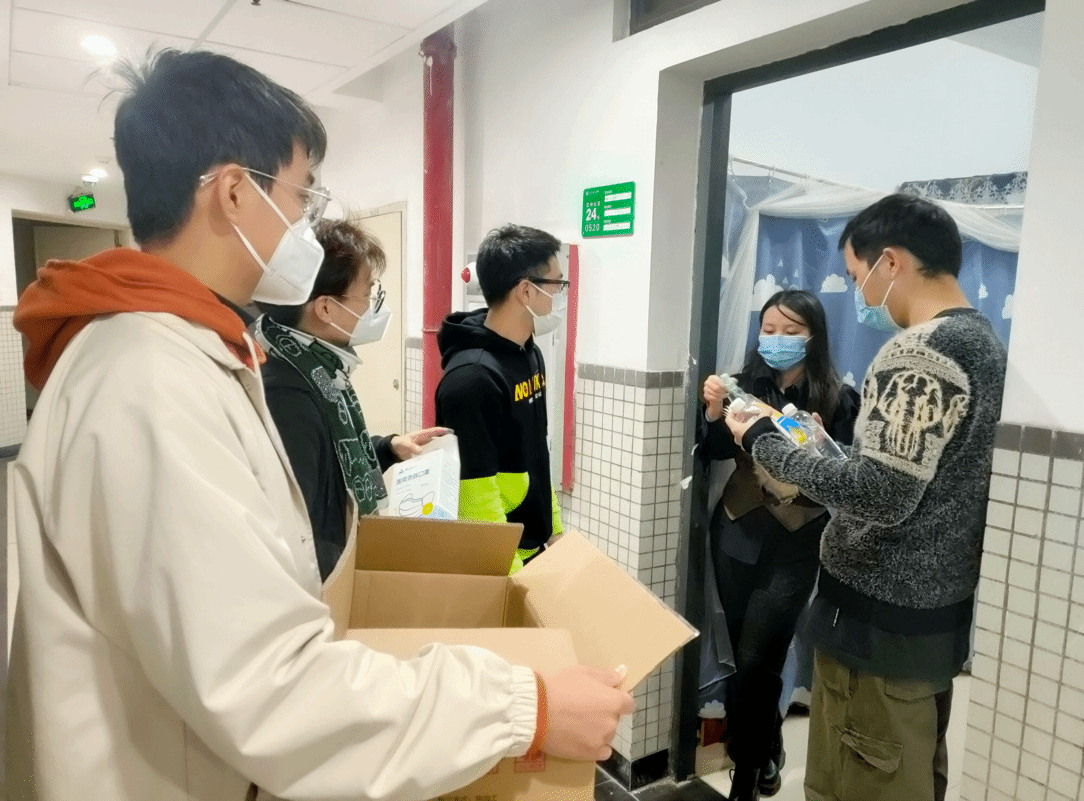 12月30日晚,cgpay钱包 研究生辅导员胡胜、研究生会干部等代表学院和研究生会到莞博社区走访慰问留校研究生。了解研究生留校原因和留校期间的科研生活情况,并派送防疫物资等慰问品。走访中,胡老师叮嘱研究生们保持身体健康,做好疫情防护,注意宿舍用电安全,合理安排假期时间,早日返乡过年,同时祝福研究生们元旦快乐。